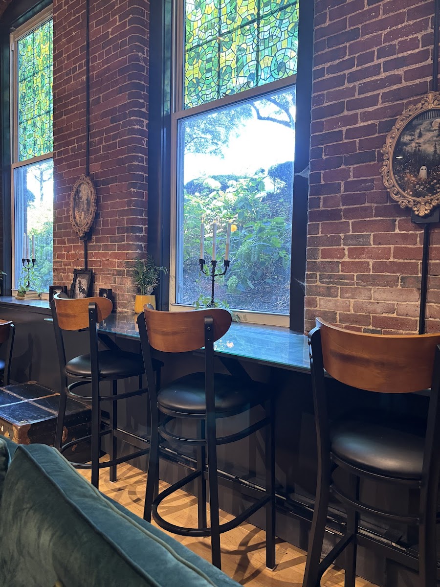 Stepping inside, you are enveloped by an ambiance that perfectly balances a cottagecore aesthetic with a hint of spookiness. Imagine soft, quiet music playing in the background as you sink into a plush couch, surrounded by quirky decor and intriguing curiosities. It’s the type of place where each corner invites exploration—from the meticulously crafted desserts made from scratch to the shelves lined with novelty teas and books waiting to be discovered.